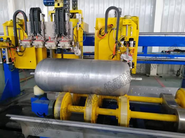 氣瓶自動化無損檢測系統(tǒng)控制的高壓氣瓶超聲波檢測設(shè)備用于在線氣瓶的超聲波全自動探傷,探傷氣瓶規(guī)格為直徑